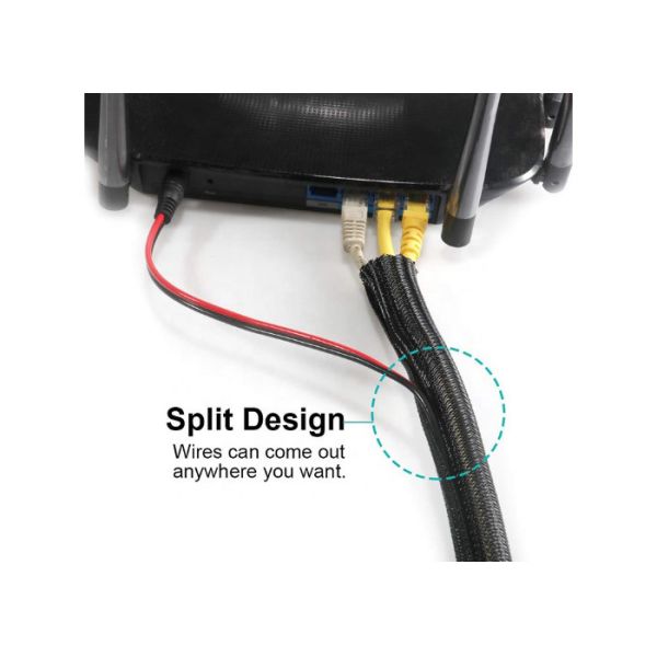 flexible semi-rigid wrappable split PET braided cable sleeving is a perfect solution to protect wires, cables, wire harnesses where ease of installation is paramount. With a 25% overlap, this sleeving wraps securely to itself eliminating the need to secure the sleeving opening with any other method.