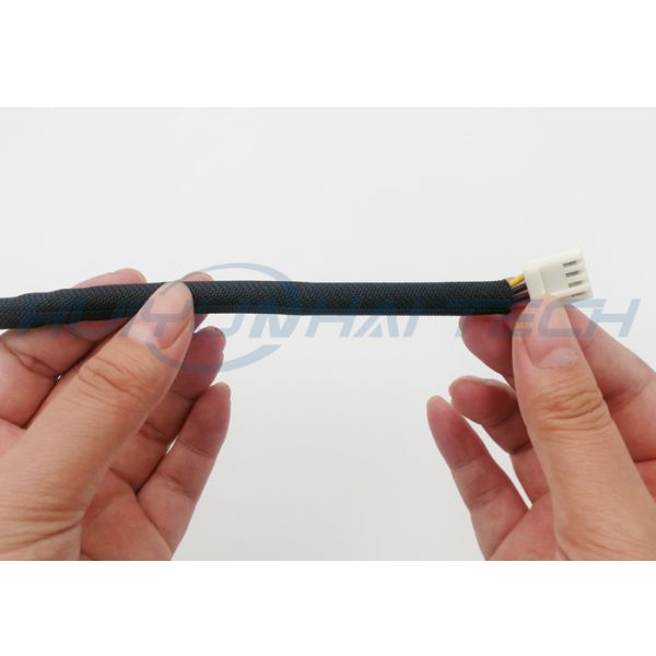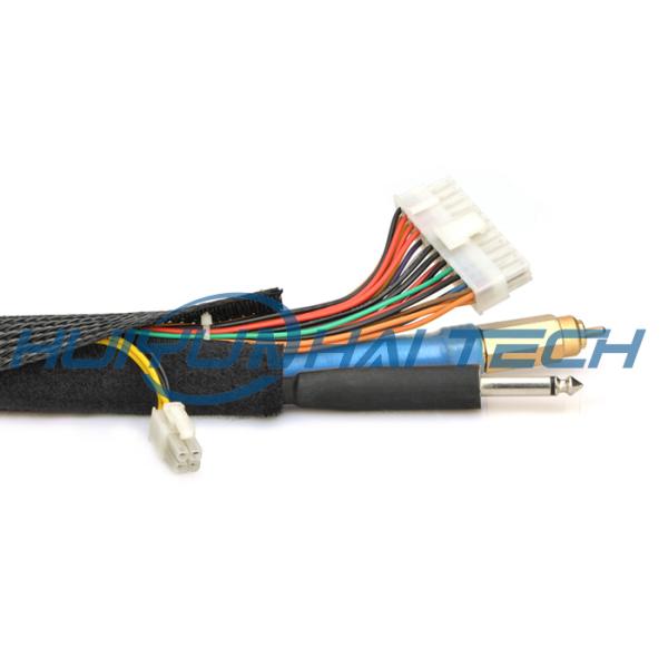The open self- closing braided sleeve is made of VO grade polyester monofilament, which has the characteristics of heat dissipation, wear resistance, acid resistance, dust resistance, softness, simple operation, convenience and quickness. The structure is beneficial to protect the maintenance, reassembly and overhaul of the internal wiring harness.